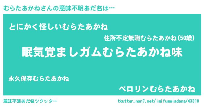 | 男性向けラノベタイトル風あだ名 | 『うちのむらたあかねが世界を掌握している!』 |
