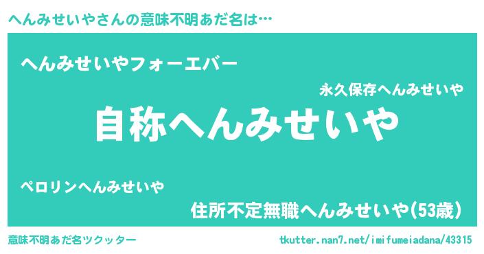 | 肩書あだ名 | 『へんみせいや総統』『へんみせいや教官』 |