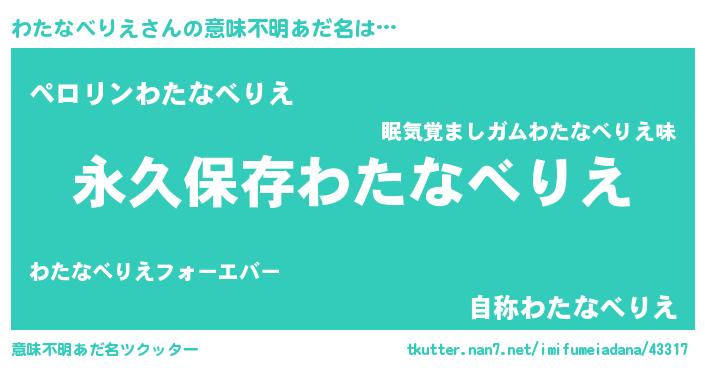 | 伝説のあだ名 | 『古より伝わる吟遊詩人わたなべりえ』 |