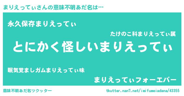 | ヘコむあだ名 | 『まりぷりん』『まりえってぃ(震え声)』 |