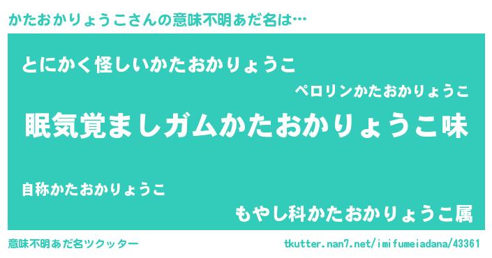 | ポケモン風あだ名 | 『カックウザ』『ヒカタオカリョウコ』 |