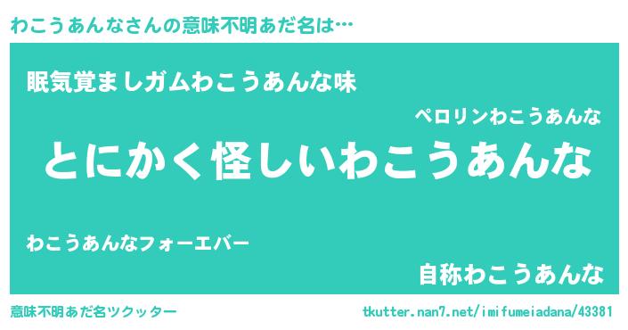 | 欧米人風あだ名 | 『ウサインわこうあんな』 |