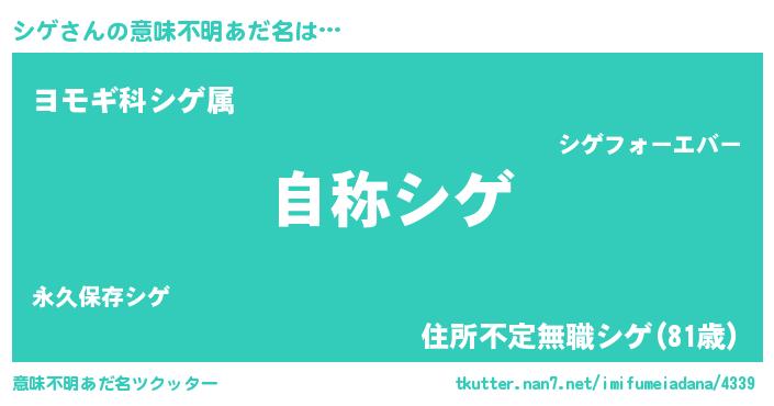 | 男性向けラノベタイトル風あだ名 | 『Re:シゲから始める異世界生活』 |