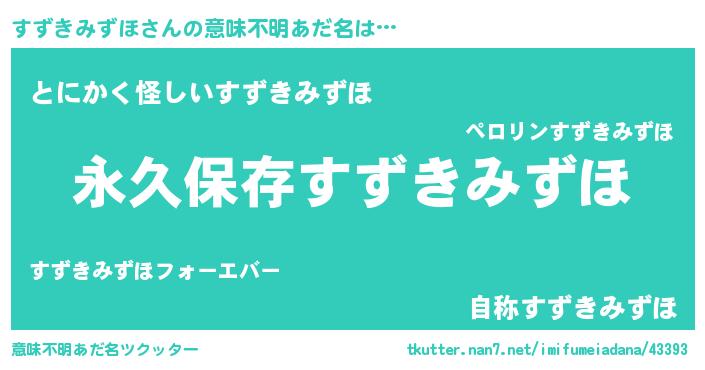 | 胡散臭い通販商品みたいなあだ名 | 『来世でも幸せになれる健康食品…その名も「すずきみずほ」』 |