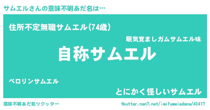 | 男性向けラノベタイトル風あだ名 | 『Re:サムエルから始める異世界生活』 |