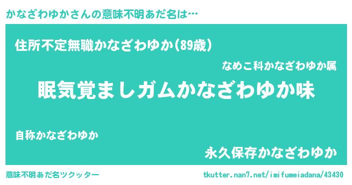 | ヘコむあだ名 | 『かなざわゆか(震え声)』『かなっふぃ~』 |