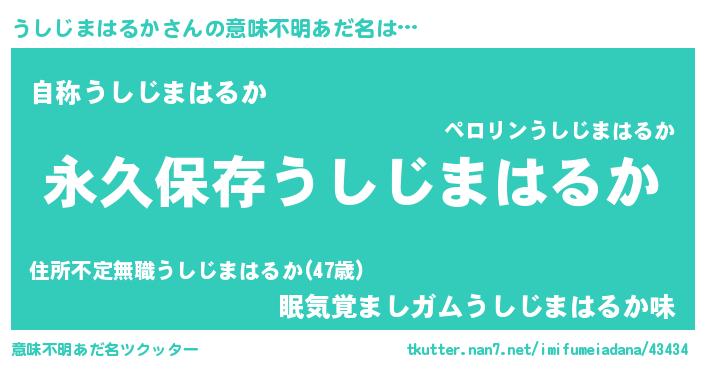 | 男性向けラノベタイトル風あだ名 | 『うしじまはるかという概念が存在しない退屈な世界 』 |