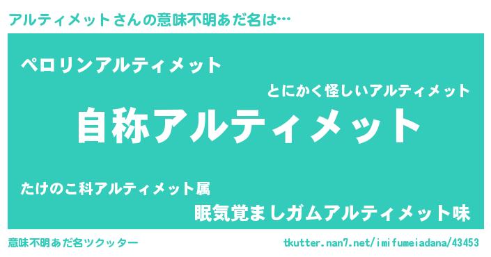 | ヒーロー風カッコイイあだ名 | 『最強戦士アルティメット』 |