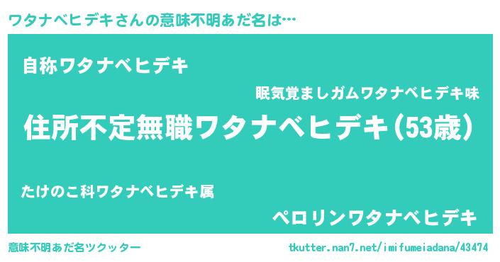 | ヒーロー風カッコイイあだ名 | 『仮面ワタダー』『ネオワタナベヒデキ』 |