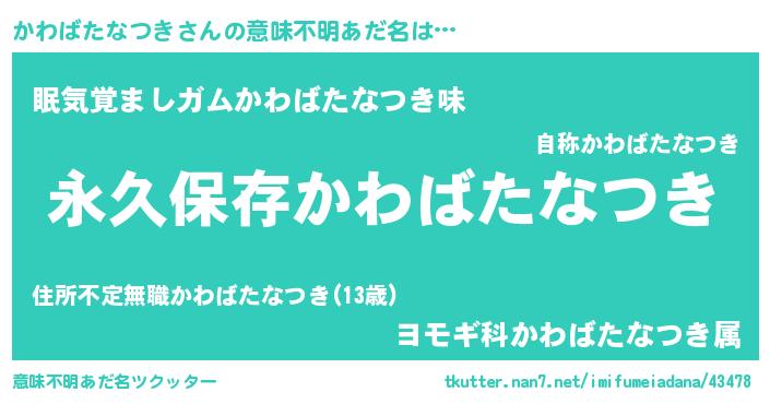 | 男性向けラノベタイトル風あだ名 | 『かわばたなつきという概念が存在しない退屈な世界 』 |