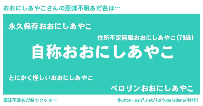| 女子向けラノベタイトル風あだ名 | 『おおにしあやこなんてお断りですっ。』 |