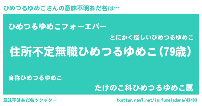 | 男性向けラノベタイトル風あだ名 | 『この素晴らしい世界にひめつるゆめこを!』 |