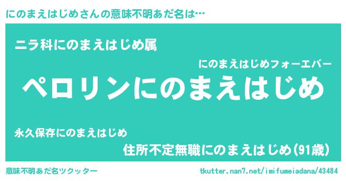 | 男性向けラノベタイトル風あだ名 | 『にのまえはじめに滅ぼされるだけの簡単なお仕事です』 |