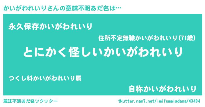 | 欧米人風あだ名 | 『ウサインかいがわれいり』 |