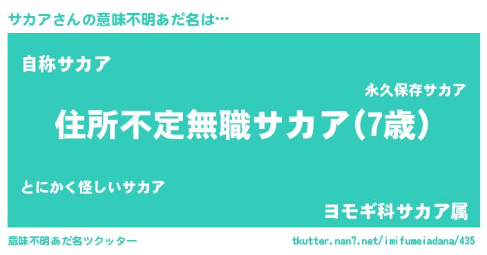 | 男性向けラノベタイトル風あだ名 | 『この素晴らしい世界にサカアを!』 |