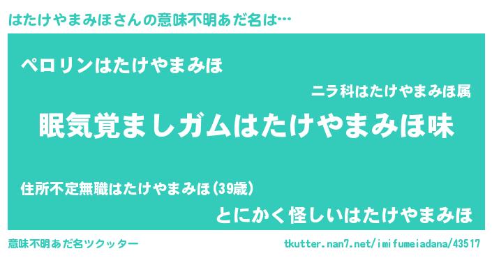 | 男性向けラノベタイトル風あだ名 | 『はたけやまみほに滅ぼされるだけの簡単なお仕事です』 |