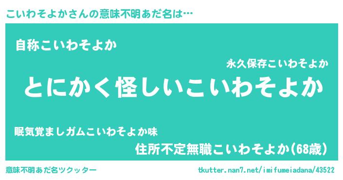| 欧米人風あだ名 | 『こいわそよか・ステッグマイヤー』 |