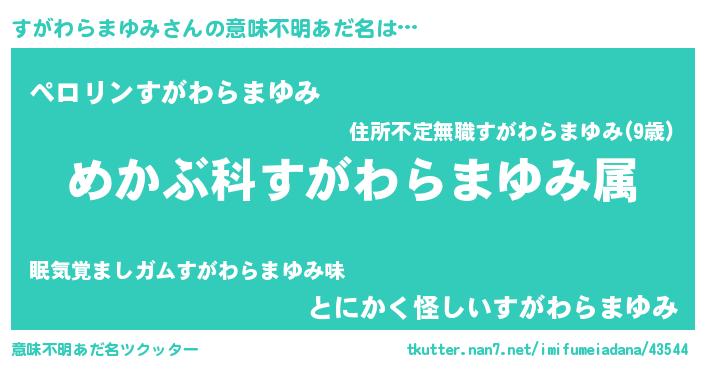 | 男性向けラノベタイトル風あだ名 | 『スガワラマユミスレイヤー』 |