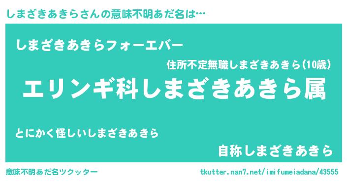 | 男性向けラノベタイトル風あだ名 | 『シマザキアキラスレイヤー』 |