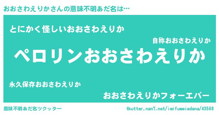 | 男性向けラノベタイトル風あだ名 | 『オオサワエリカアートオンライン』 |