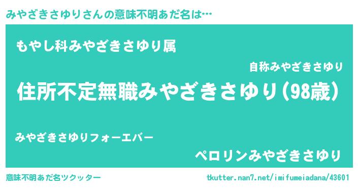 | 男性向けラノベタイトル風あだ名 | 『魔弾の王とみやざきさゆり』 |