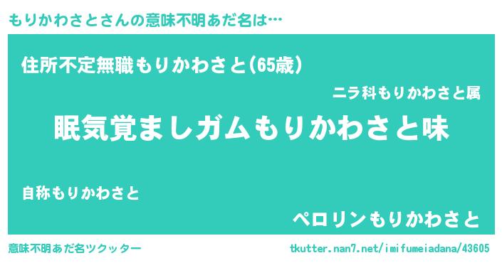 | ヘコむあだ名 | 『もりにー』『なまこ酢』『もりお』 |