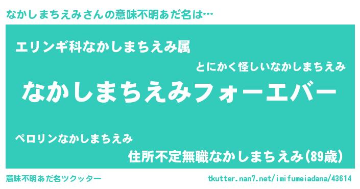 | 欧米人風あだ名 | 『なかしまちえみクリステル』 |