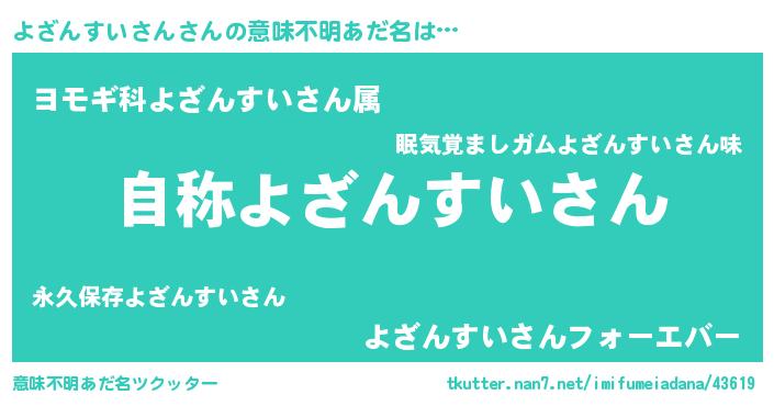 | 恥ずかしいあだ名 | 『ヨザンスイサンデラックス』『よざちん』 |