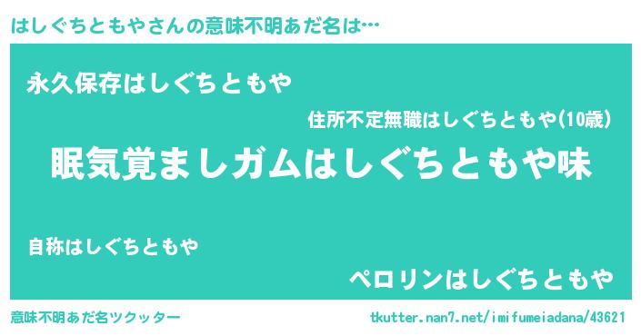 | ヘコむあだ名 | 『はしぐちともや(笑)』『はしにゅー』 |