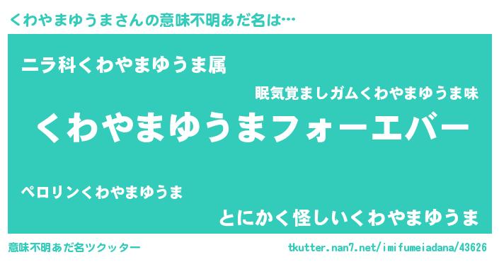 | 欧米人風あだ名 | 『くわやまゆうまクリステル』 |