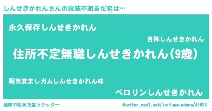 | ヘコむあだ名 | 『しんせきかれん(笑)』『しんふぇ~』 |