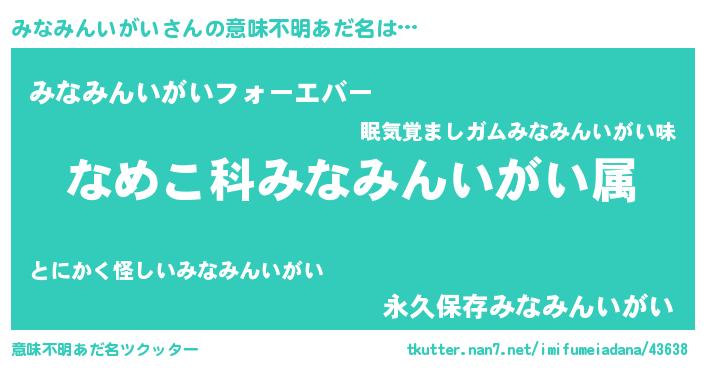 | 男性向けラノベタイトル風あだ名 | 『転生したらみなみんいがいだった件』 |