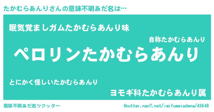 | 胡散臭い通販商品みたいなあだ名 | 『モテモテ間違いなし霊験あらたかなお札…その名も「たかむらあんり」』 |