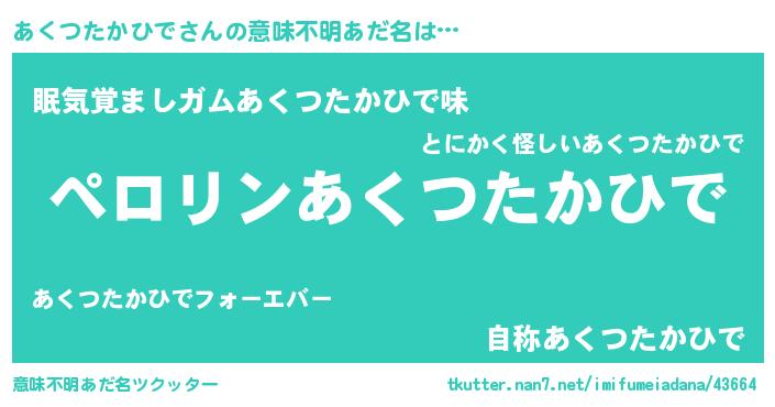 | 男性向けラノベタイトル風あだ名 | 『あくつたかひでの憂鬱』 |