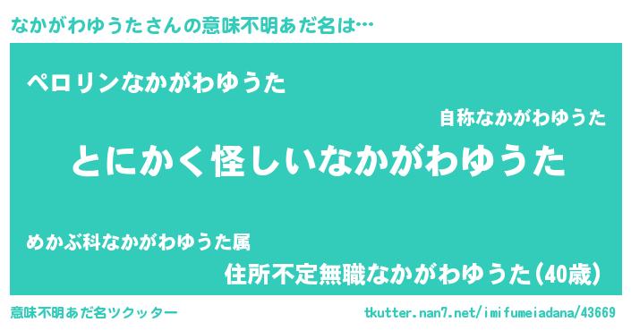 男性向けラノベタイトル風あだ名 | 『ダンジョンになかがわゆうたを求めるのは間違っているだろうか』 |