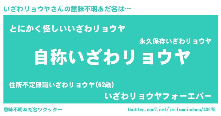 | 男性向けラノベタイトル風あだ名 | 『Re:いざわリョウヤから始める異世界生活』 |
