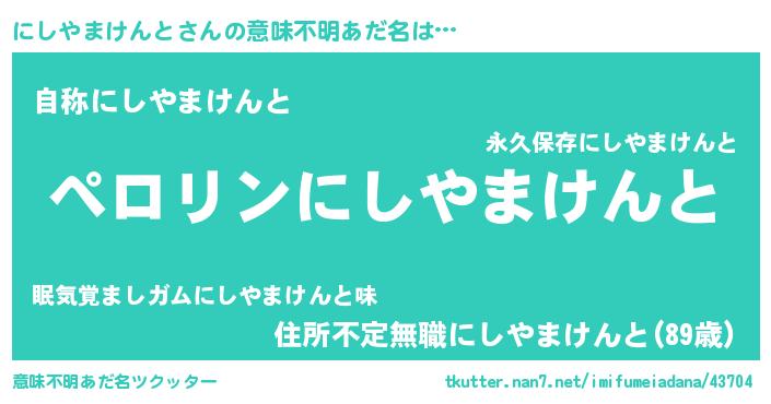 | ヘコむあだ名 | 『にしにー』『にしやまけんと(震え声)』 |