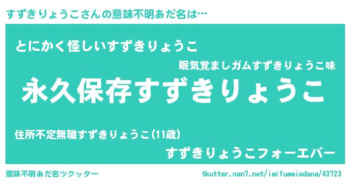 | ヘコむあだ名 | 『すずきりょうこ(笑)』『すず太郎』 |