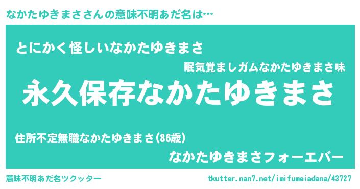 | 男性向けラノベタイトル風あだ名 | 『なかたゆきまさという概念が存在しない退屈な世界 』 |