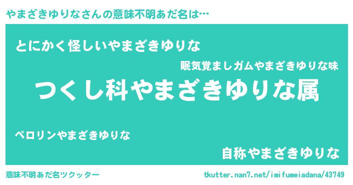 | 男性向けラノベタイトル風あだ名 | 『やまざきゆりな~年齢イコール彼女いない歴の魔法使い~』 |