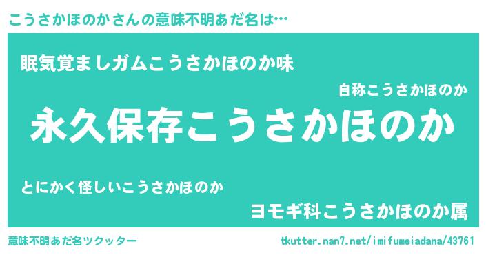 | 胡散臭い通販商品みたいなあだ名 | 『来世でも幸せになれる健康食品…その名も「こうさかほのか」』 |