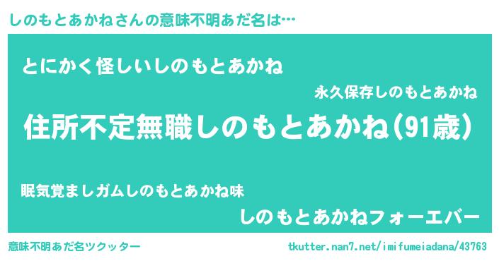 | 伝説のあだ名 | 『覚醒した遊び人しのもとあかね』 |