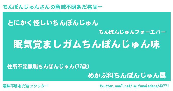 | ヒーロー風カッコイイあだ名 | 『慈愛の使者ちんぽんじゅん』 |