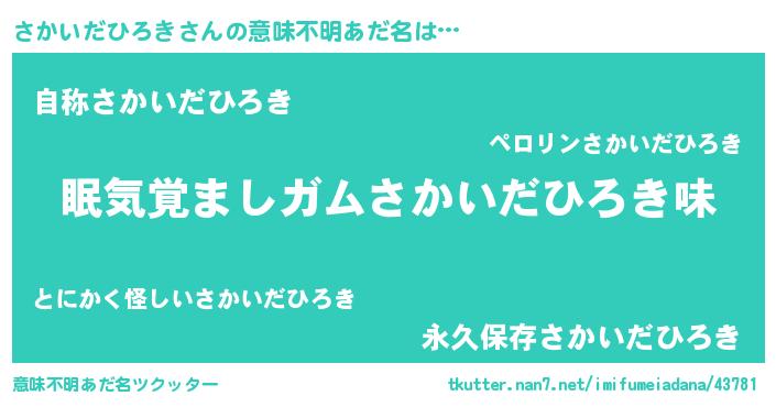| ヘコむあだ名 | 『さかいだひろき(震え声)』『さかふぇ~』 |