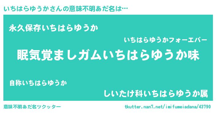 | ヘコむあだ名 | 『いちはらゆうか(小並感)』『つくし』 |