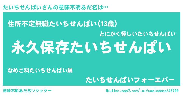 | 女子向けラノベタイトル風あだ名 | 『異世界で失敗しない100のたいちせんぱい』 |