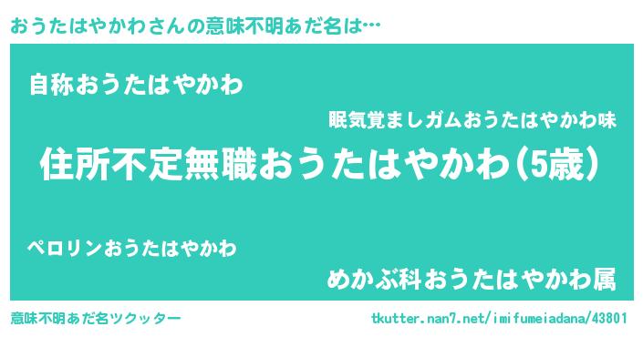 | 欧米人風あだ名 | 『ダレノガレおうたはやかわ』 |