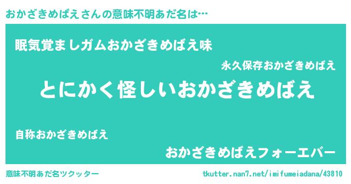 | 胡散臭い通販商品みたいなあだ名 | 『信頼と実績のペンダント…その名も「おかざきめばえ」』 |