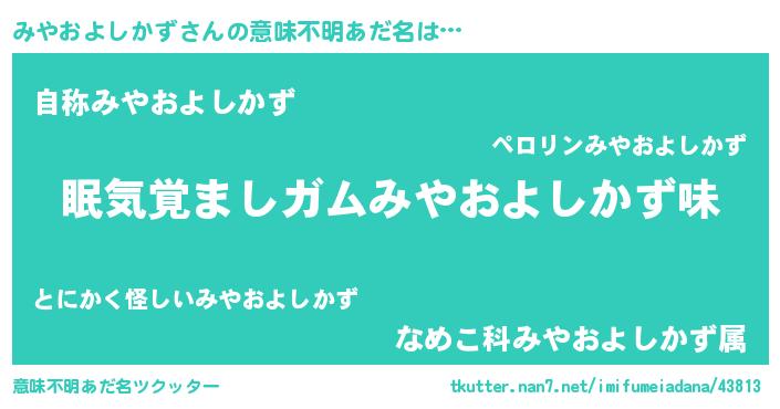 | ヘコむあだ名 | 『みやにー』『みやぷりん』『牛乳』 |
