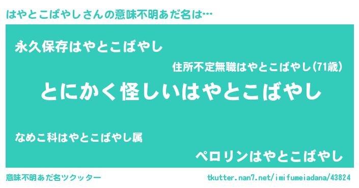| ポケモン風あだ名 | 『ヒハヤトコバヤシ』『ゼニハヤ』 |
